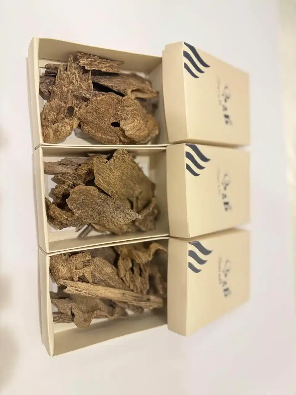 يُجنى العود المروكي حي من غابات مروكي الإندونيسية، ثم يُعالج بحذر لتحويله إلى كسر مباخر خالٍ من الإضافات. تقنيات التنقية تعزز نقاء الراتينج دون المساس بفوحانه.